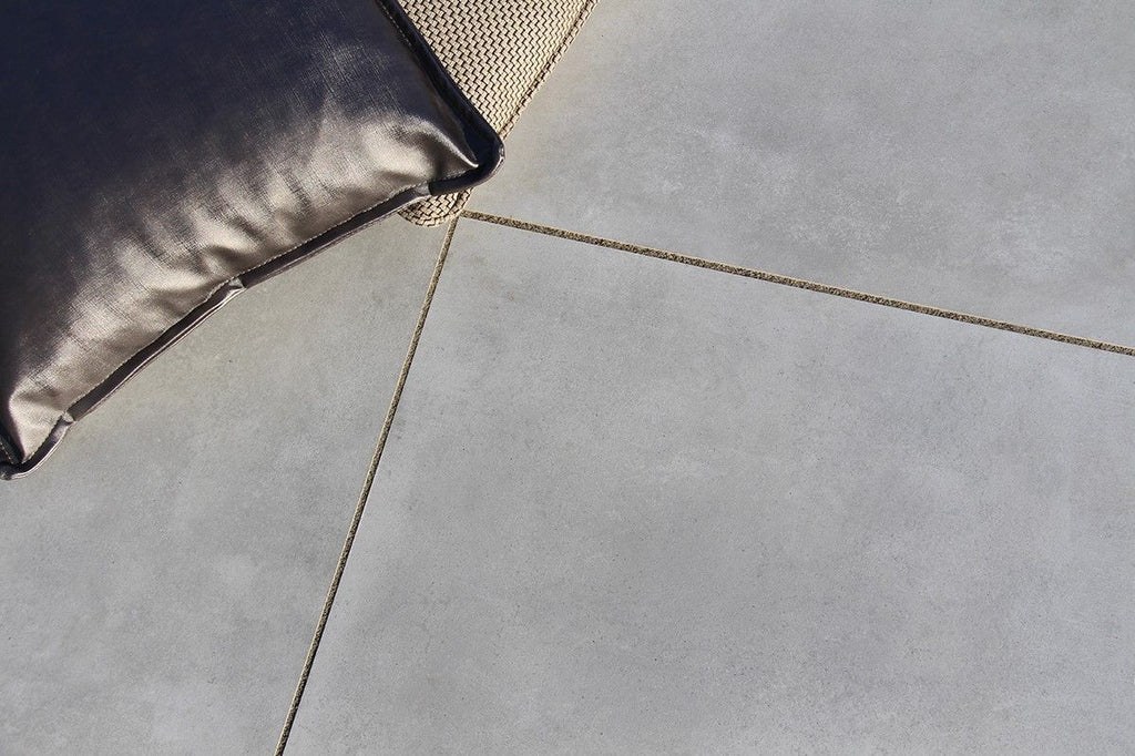 De Cera4line Europe-serie biedt een moderne en industriële uitstraling dankzij de strakke betonlook. Deze tegels met een afmeting van 60x60x4 cm combineren een 1 cm keramische toplaag met een 3 cm betonnen basis, wat zorgt voor een stevige en duurzame tegel die eenvoudig op een zandbed gelegd kan worden.