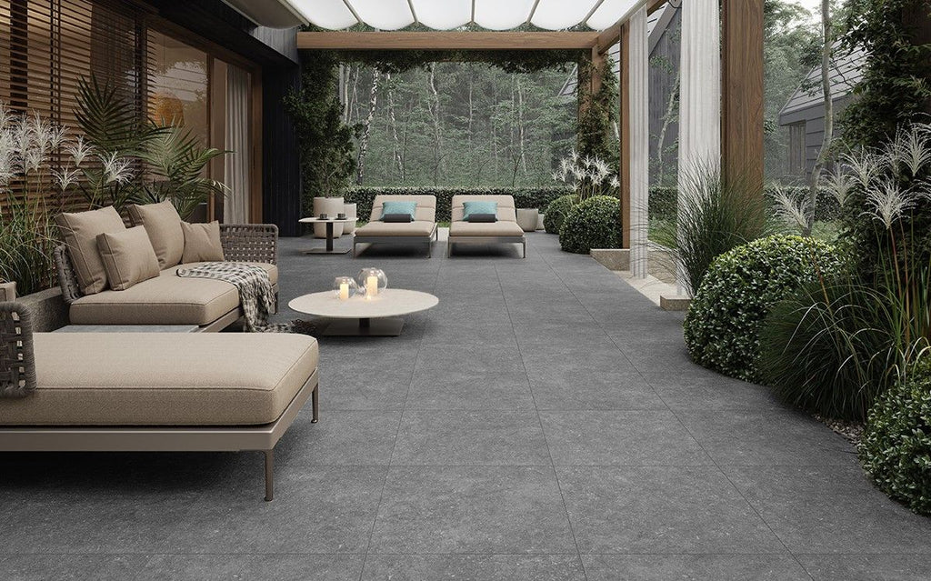 De Ceramica Medicio-serie vangt de verfijnde charme van Belgisch hardsteen in een duurzame keramische tegel. De subtiele kleurnuances en elegante afwerking maken deze tegels een veelzijdige keuze die in elke tuinstijl past, van klassiek tot modern.