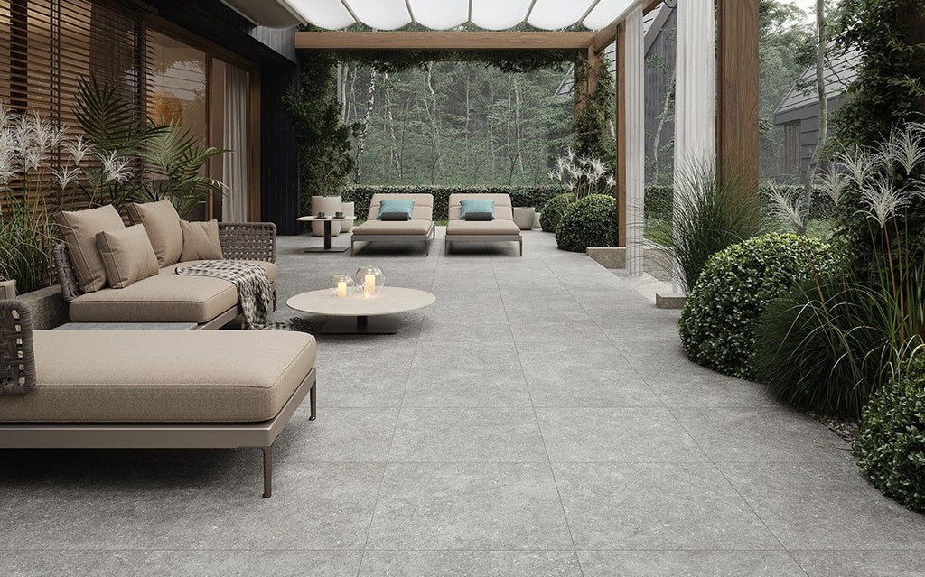 De Ceramica Medicio-serie vangt de verfijnde charme van Belgisch hardsteen in een duurzame keramische tegel. De subtiele kleurnuances en elegante afwerking maken deze tegels een veelzijdige keuze die in elke tuinstijl past, van klassiek tot modern.